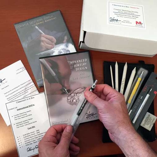 Rémy has produced a ground-breaking series of jewelry design training DVDs. The first, Counter Sketching Jewelry, teaches how to make black and white custom design sketches on paper in front of a client. The second, Color Rendering of Jewelry, instructs how to render jewelry designs into finished paintings that can be presented to customers. His most recent course, Advanced Jewelry Design, includes more than 7 hours of instruction in black and white design and drawing skills. These three courses encapsulate classes that Rotenier has taught at jewelry and design schools for years, and incorporate skills he has learned in 30 years as a professional designer.