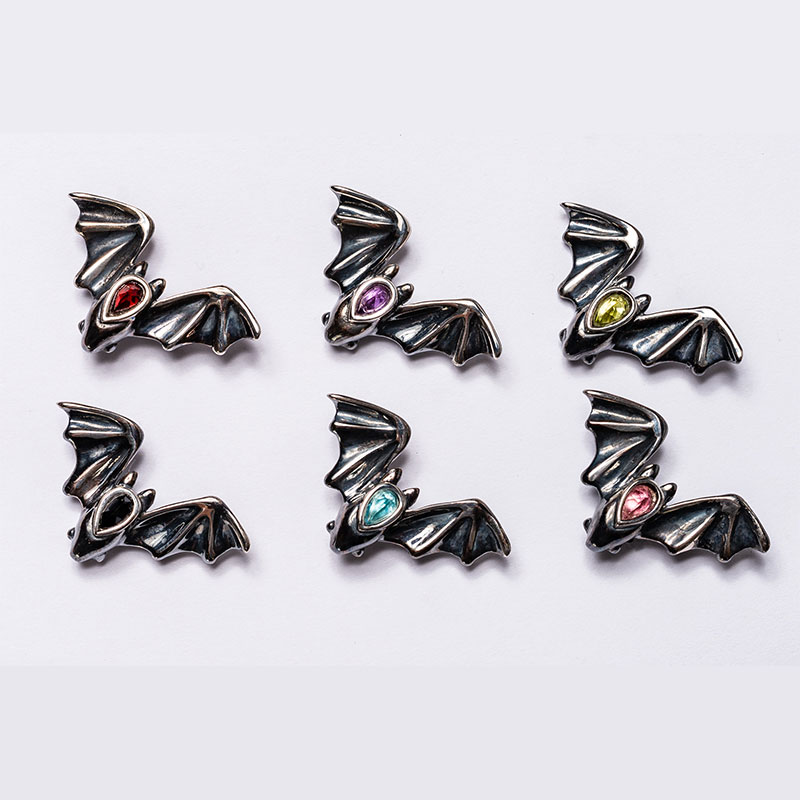 Bats have long been symbols of rebirth. They reside in (and emerge from) sacred caves, are guides through the darkness, and live in tight communities with strong family bonds. They have long been treasured as symbols of good luck and for their healing properties. Wear these tiny sculptures as tie pins, scarf fasteners, lapel pins, or anywhere you want to display your appreciation for these highly intelligent little creatures.