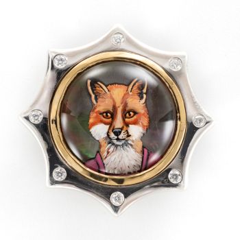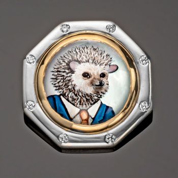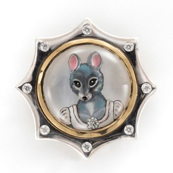 Rotenier, a classically trained French jewelry artist and designer who has painted fine art miniatures for decades, uses reverse carved rock crystal cabochons, providing the portraits with dimension and depth. The animal