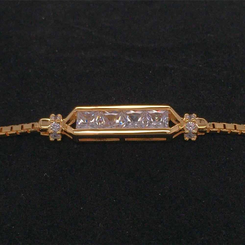 The Bar bracelet is ideal to stack with your other favorite bracelets. It will be the life of the (arm) party! The center design has channel set princess cuts and the sides are pavé. Also the box chain with the adjustable feature make it really different.