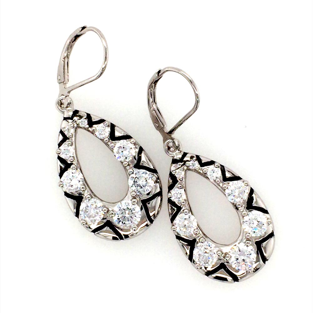 These earrings are well crafted with lines of black enamel representing a lotus flower. The contrast of black and white makes them so different with their open space in the center. The tops are lever backs to make them easy and secure.