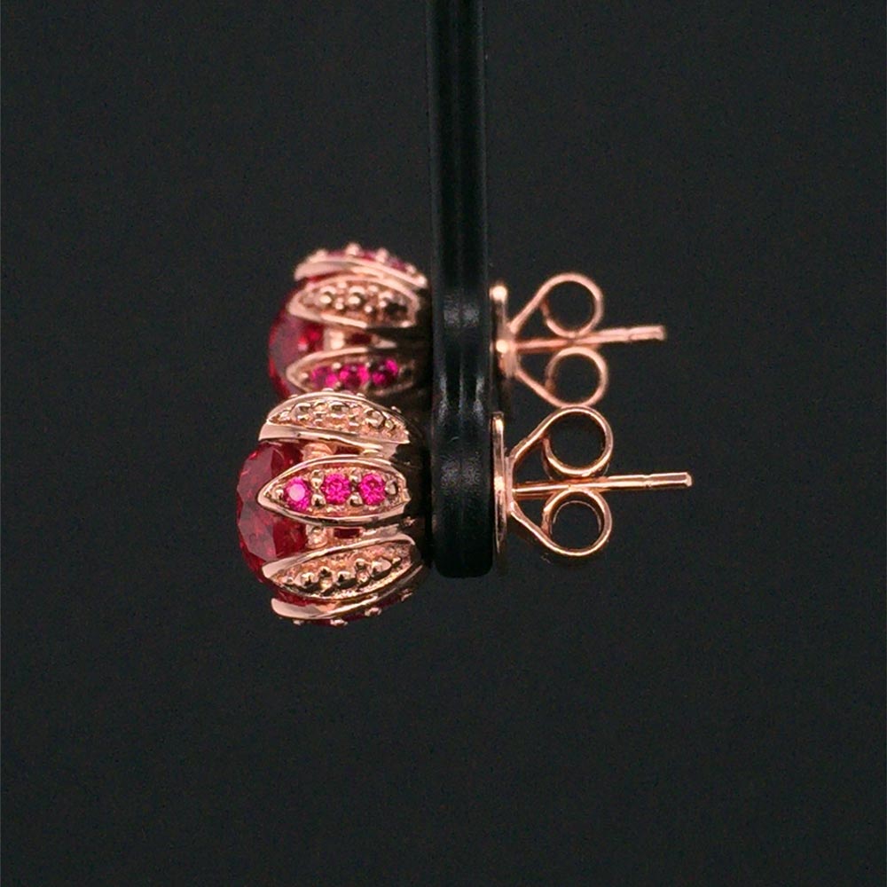 For the matching earrings to the ring I just kept the Rosebud design with alternating rubies and gold beads on the sides.